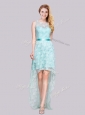 Home >  Prom Dresses >  Customized Prom Dresses > Modern High Low Belted and Laced Apple Green Prom Dress with Bateau