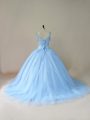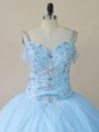 Modern Light Blue Sweet 16 Quinceanera Dress Sweet 16 and Quinceanera with Beading Straps Sleeveless Brush Train Lace Up