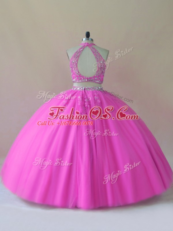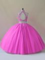 Modern Lilac 15th Birthday Dress Sweet 16 and Quinceanera with Beading Halter Top Sleeveless Backless