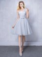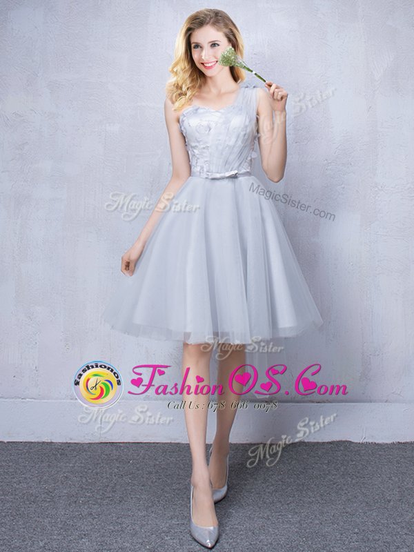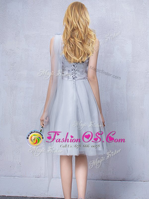 Modern One Shoulder Sleeveless Lace Up Wedding Guest Dresses Grey Tulle