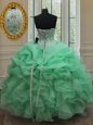 Modern Organza Scoop Sleeveless Lace Up Beading and Pick Ups Sweet 16 Quinceanera Dress in Blue