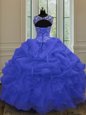 Home >  Quinceanera Dresses >  Luxurious Quinceanera Dresses > Modern Organza Scoop Sleeveless Lace Up Beading and Pick Ups Sweet 16 Quinceanera Dress in Blue