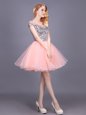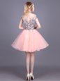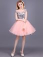 Modern Pink A-line Sequins Dama Dress Zipper Tulle Short Sleeves Mini Length