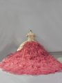 Modern Pink Ball Gowns Embroidery and Ruffles Quinceanera Dress Lace Up Organza Sleeveless Floor Length