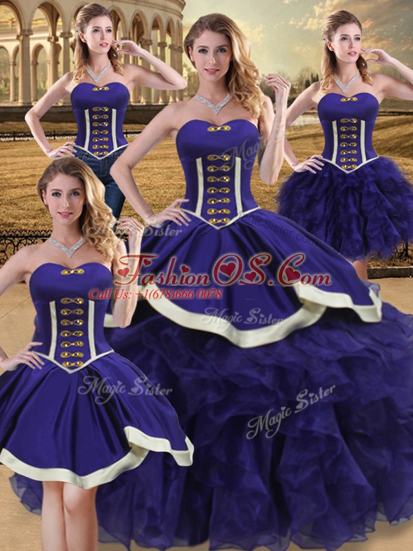 Home >  Quinceanera Dresses >  Detachable Quinceanera Skirts > Modern Purple Ball Gowns Sweetheart Sleeveless Satin Floor Length Lace Up Beading and Ruffles Quinceanera Gowns