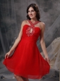 Seize the day at your prom! This red short prom dress is made of crossover straps with keyhole adorned with shining, colorful beading that plays up your youthful figure with some eye-catching style. The chiffon knee-length short skirt sways beautifully across the floor when you move, as if you're floating on air. the paralleled straps and a zipper in the back complete overall look.