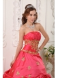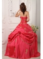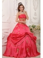 Modern Red Quinceanera Dress Strapless Taffeta Beading and Appliques A-line