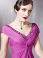 Home >  Prom Dresses >  Cheap Prom Dresses > Modern Rose Pink Empire Beading and Ruching Zipper Tulle Cap Sleeves Floor Length