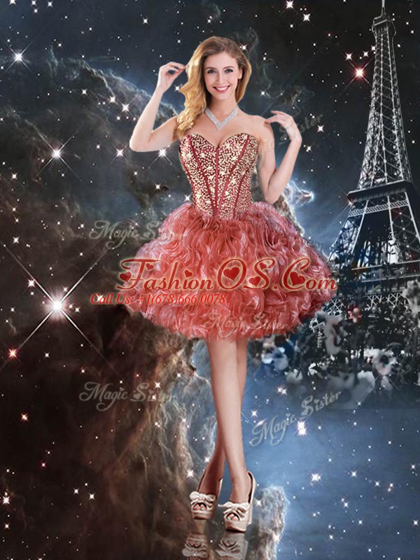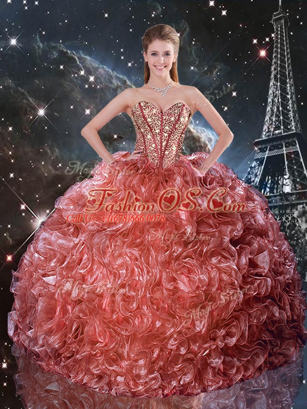 Modern Rust Red Sleeveless Beading and Ruffles Floor Length Sweet 16 Quinceanera Dress