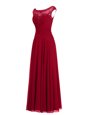 Modern Scoop Wine Red Cap Sleeves Floor Length Appliques Zipper Evening Dress