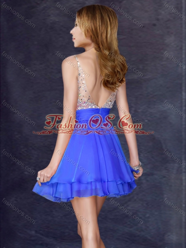 Modern Sequined A Line Short Prom Dress in Royal Blue