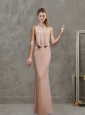 Modern Sequined Column Champagne Long Modest Prom Dress with Backless