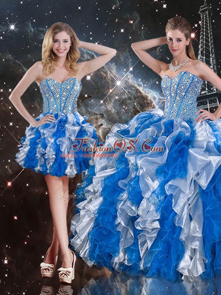 Home >  Quinceanera Dresses >  Detachable Quinceanera Skirts > Modern Sleeveless Floor Length Beading and Ruffles Lace Up Quince Ball Gowns with Multi-color