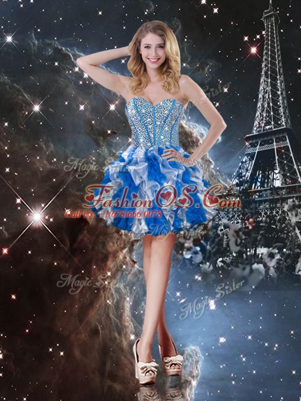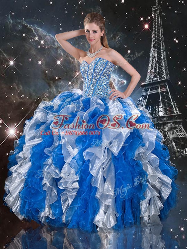 Modern Sleeveless Floor Length Beading and Ruffles Lace Up Quince Ball Gowns with Multi-color
