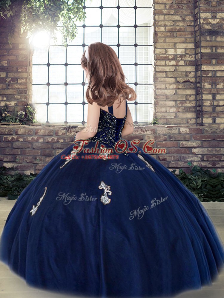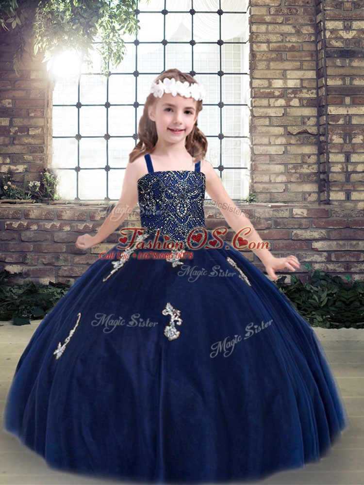 Modern Sleeveless Lace Up Floor Length Beading and Appliques Little Girl Pageant Gowns
