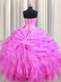 Modern Sleeveless Organza Floor Length Brush Train Lace Up 15th Birthday Dress in Lilac for with Beading and Ruffles and Pick Ups