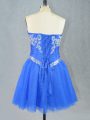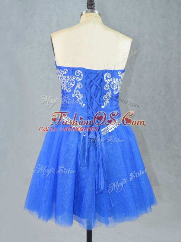 Modern Sleeveless Tulle Mini Length Lace Up Celebrity Style Dress in Blue with Beading