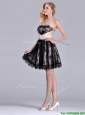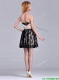 Modern Strapless Black Short Bridesmaid  Dress with Lace and Belt