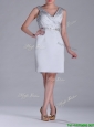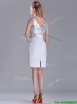 Modern V Neck Belted with Beading Mother of the Bride Dress in Silver