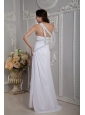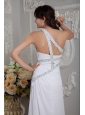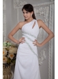 Modern White Column Prom Dress One Shoulder Beading Brush Train Chiffon