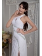 Home >  Prom Dresses >  Elegant Prom Dresses > Modern White Column Prom Dress One Shoulder Beading Brush Train Chiffon