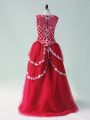 Modern Wine Red Sleeveless Beading and Appliques High Low Prom Evening Gown