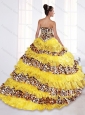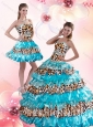 Home >  Quinceanera Dresses >  Unique Quinceanera Dresses > Modest 2015 Leopard Printed Sweetheart Beaded Aqua Blue Quinceanera Dresses with Brush Train