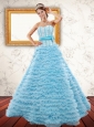 Modest 2015 Light Blue Quinceanera Dresses with Beading and Ruffled Layers
