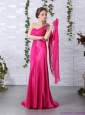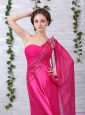 Modest 2015 One Shoulder Fuchsia Prom Dress with Beading and Ruching