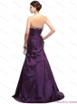 Modest 2015 Romantic Brush Train Prom Dress with Ruching and Beading