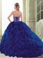 Modest 2015 Sweetheart Beading and Ruffles Navy Blue Quinceanera Dresses