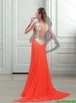 Modest 2015 V Neck Empire Appliques Prom Dresses in Orange Red