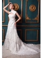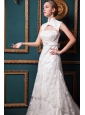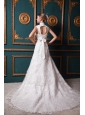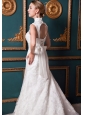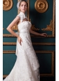 Modest A-line High-low Chapel Train Lace Sash Wedding Dress