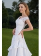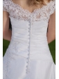 Modest A-line Off The Shoulder Court Train Taffeta Lace and Ruch Wedding Dress