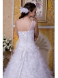 This wedding dress features an embroided one shoulder neckline, which meets the needs of your admiration towards your shoulder. The floor lenghth skirt has an asymmetrical hem and is made from many layers of ruched tulle. The ruching adds just enough fullness without creating a lot of bulk. Lace up back adds more charm to the dress.