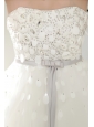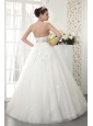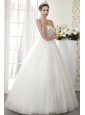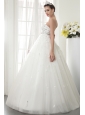 Modest A-line / Princess Strapless Floor-length Tulle Beading Wedding Dress