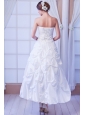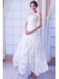 Home >  Wedding Dresses >  Short Wedding Dresses > Modest A-line Strapless Ankle-length Taffeta Sequin Wedding Dress