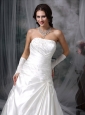 Home >  Wedding Dresses >  Popular Wedding Dresses > Modest A-line Strapless Wedding Dress Taffeta Appliques Court Train