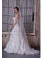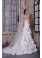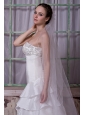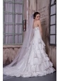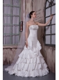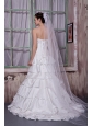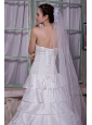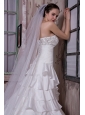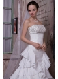 Home >  Wedding Dresses >  Beautiful Wedding Dresses > Modest A-line Strapless Wedding Dress Taffeta Appliques Ruffled Layers Brush Train