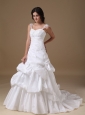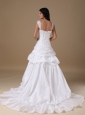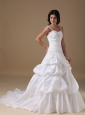Modest A-line Straps Court Train Taffeta Appliques Wedding Dress