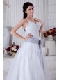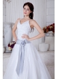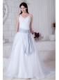 Modest A-line Straps Sashes Wedding Dress Court Train Organza
