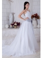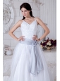 Home >  Wedding Dresses >  Popular Wedding Dresses > Modest A-line Straps Sashes Wedding Dress Court Train Organza