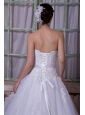 Modest A-line Sweetheart Chapel Train Taffeta and Organza Appliques and Hand Made Flower Wedding Dress