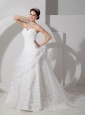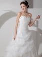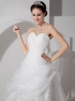 Modest A-line Sweetheart Wedding Dress Organza Ruch Brush Train