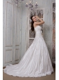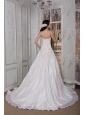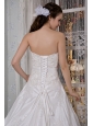 Home >  Wedding Dresses >  Elegant Wedding Dresses > Modest A-line Sweetheart Wedding Dress Taffeta Appliques and Hand Made Flower Brush Train