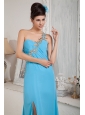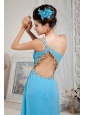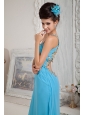 Home >  Prom Dresses >  Sexy Prom Dresses > Modest Aqua Blue Empire One Shoulder Prom Dress Chiffon Beading Floor-length