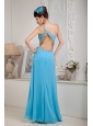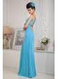 Modest Aqua Blue Empire One Shoulder Prom Dress Chiffon Beading Floor-length
