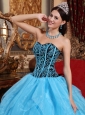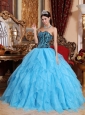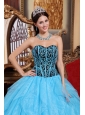 Modest Aqua Blue Quinceanera Dress Sweetheart Floor-length Organza Embroidery with Beading Ball Gown
