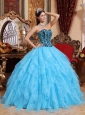 Home >  Quinceanera Dresses >  Fashionable Quinceanera Dresses > Modest Aqua Blue Quinceanera Dress Sweetheart Floor-length Organza Embroidery with Beading Ball Gown