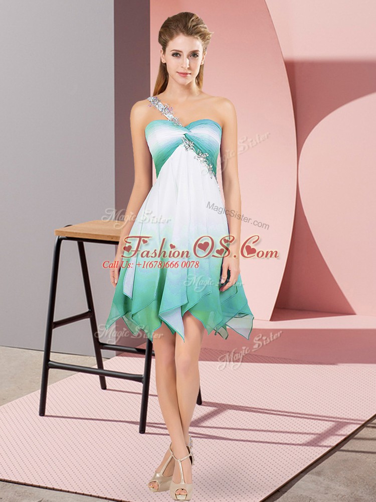 Modest Asymmetrical Multi-color Prom Gown One Shoulder Sleeveless Lace Up